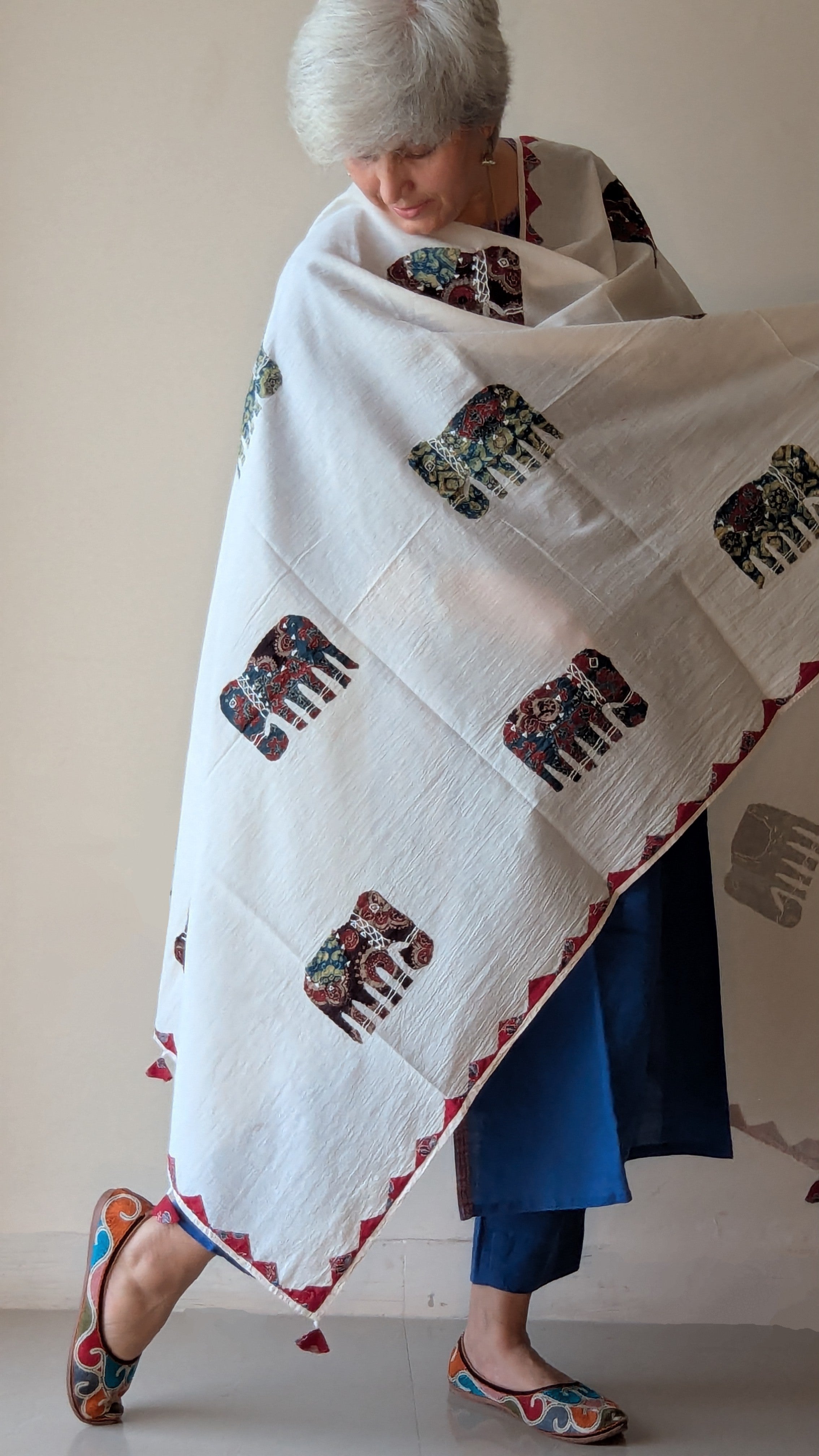 Ajrakh Patchwork Dupattas Crafted on soft off-white Mul Cotton, these dupattas feature intricate patchwork with animal motifs—each...