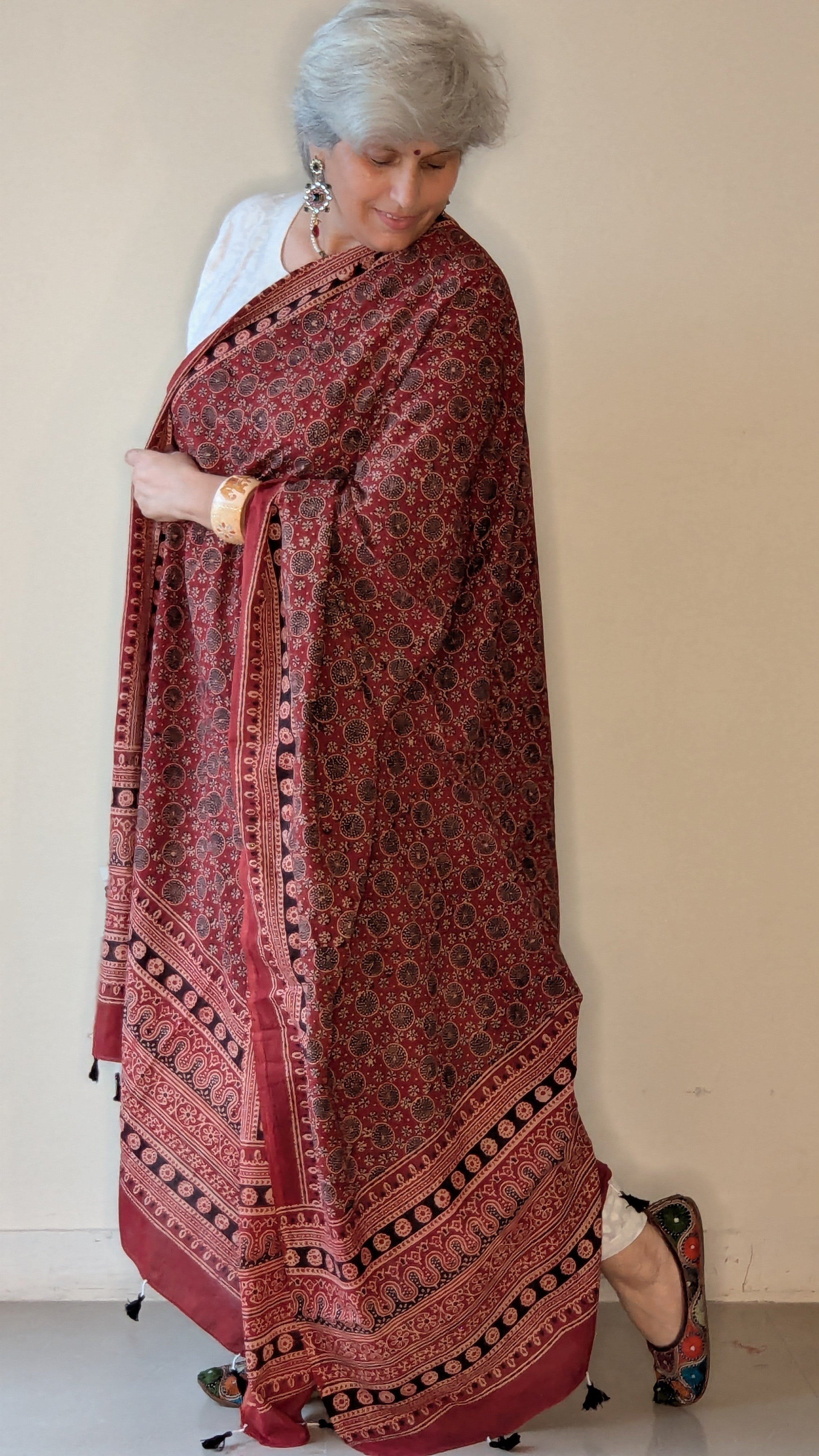 Handcrafted in Rajasthan, Ajrakh dupattas are created using centuries-old block printing traditions. Printed with natural dyes like...