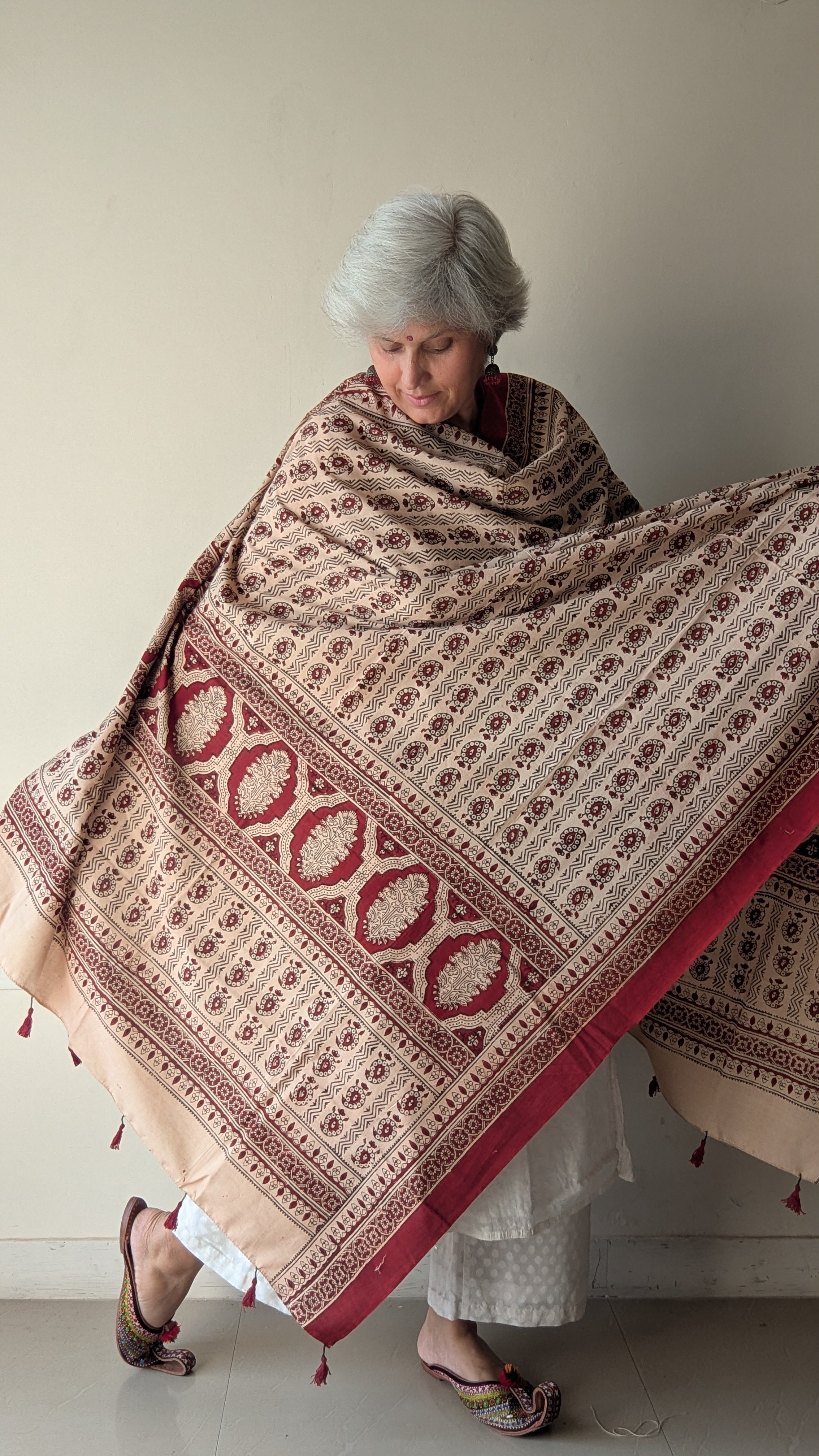 Handcrafted in Rajasthan, Ajrakh dupattas are created using centuries-old block printing traditions. Printed with natural dyes like...