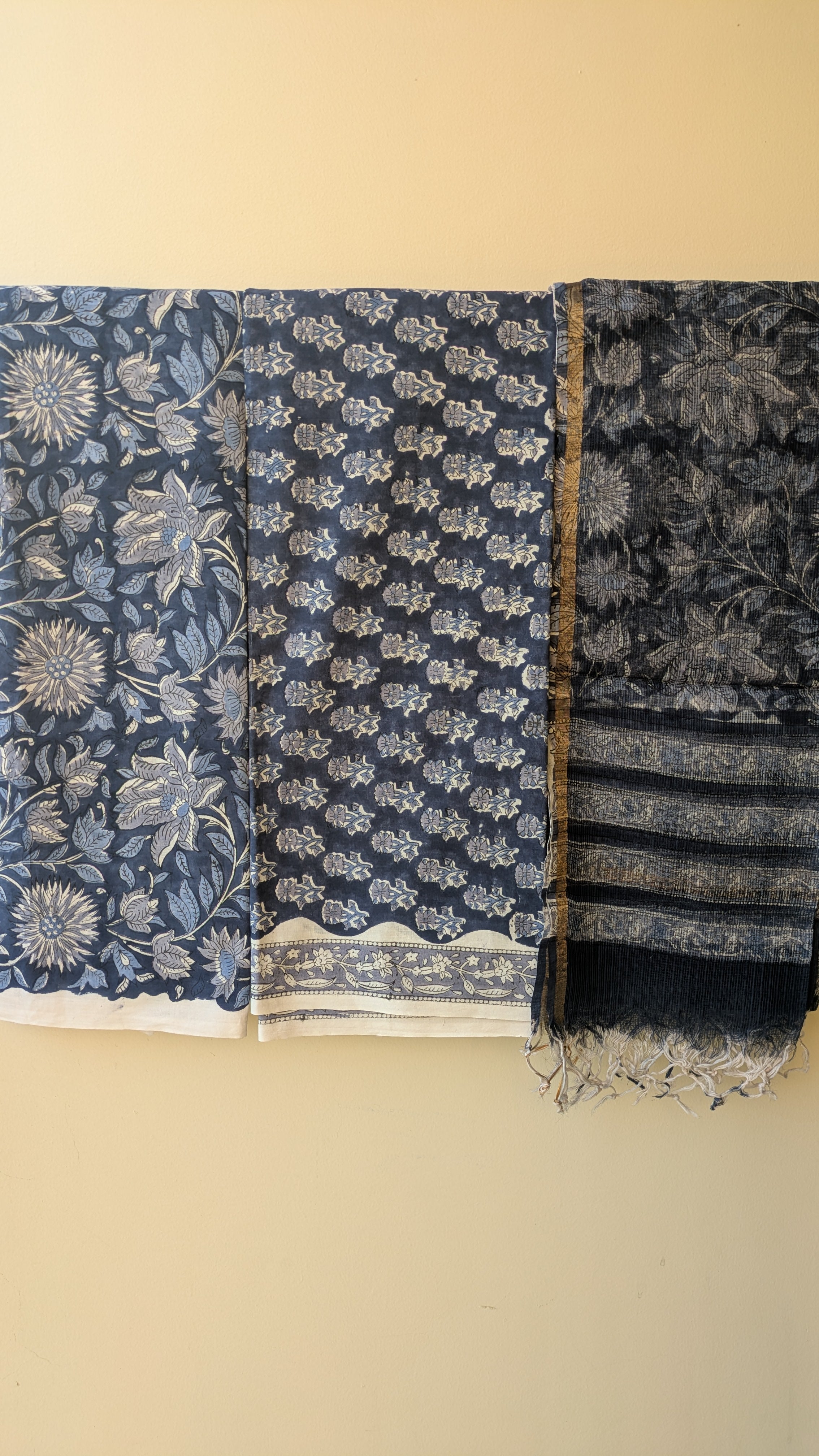 Crafted for summer days and easy routines, this soft, handblock printed unstitched cotton suit set is perfect for those who love floral motifs.