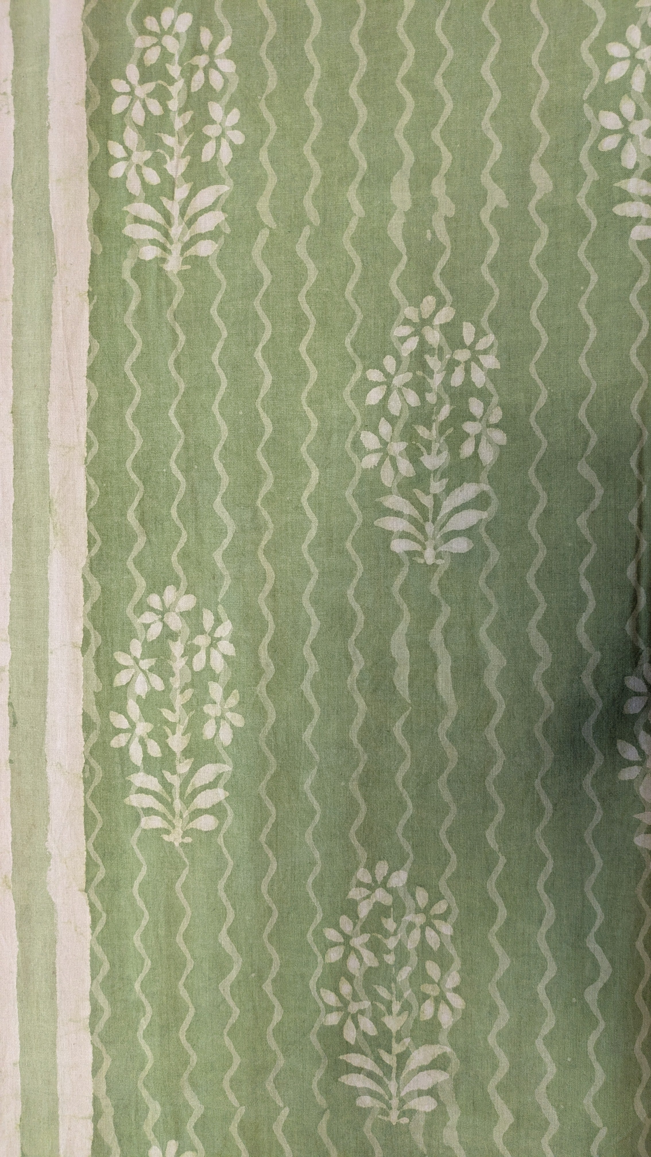 Soft as a spring breeze, Fresh Flora is a celebration of new beginnings and natural beauty. Handcrafted in the age-old Dabu resist printing technique, this unstitched cotton suit features blooming floral patterns in a gentle baby foliage green shade—refreshing, soothing, and full of quiet charm.