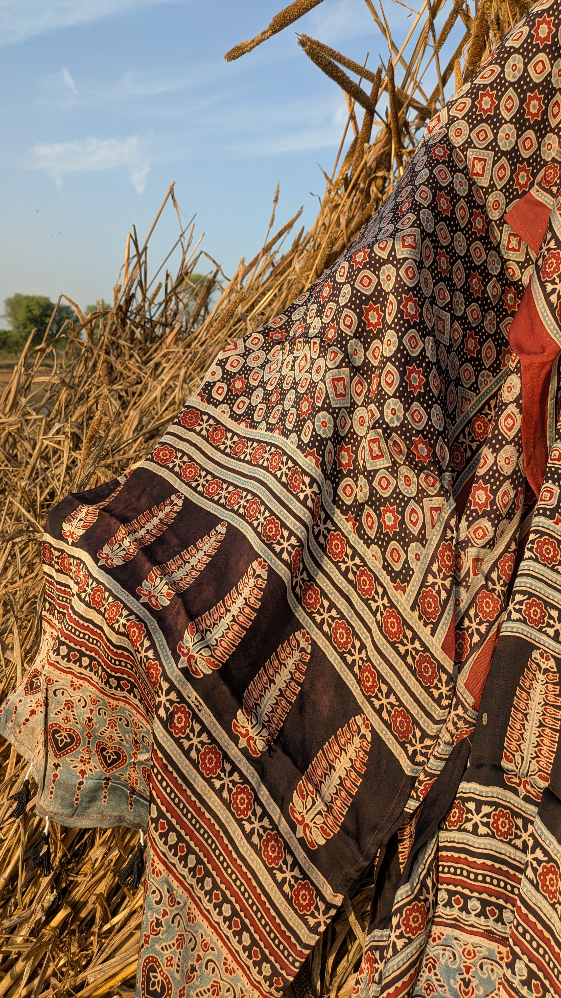Material: Luxurious Modal Silk (silk and cotton blended fibre) Craft:Ajrakh Hand Block Printing – a traditional craft...