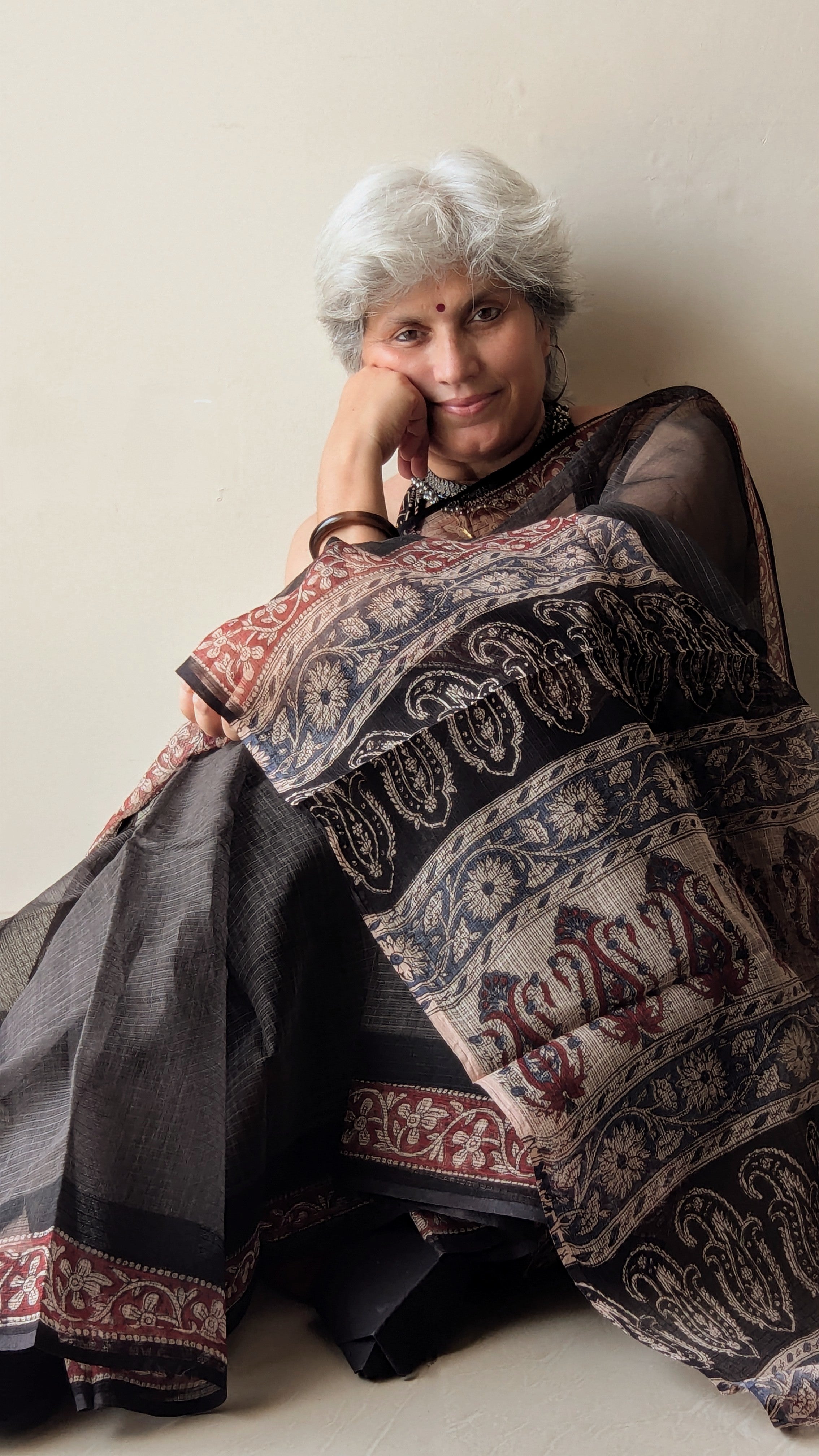 Traditional Bagru Print Cotton Kota Doria Saree – Syahi Begar Technique with Zari Border