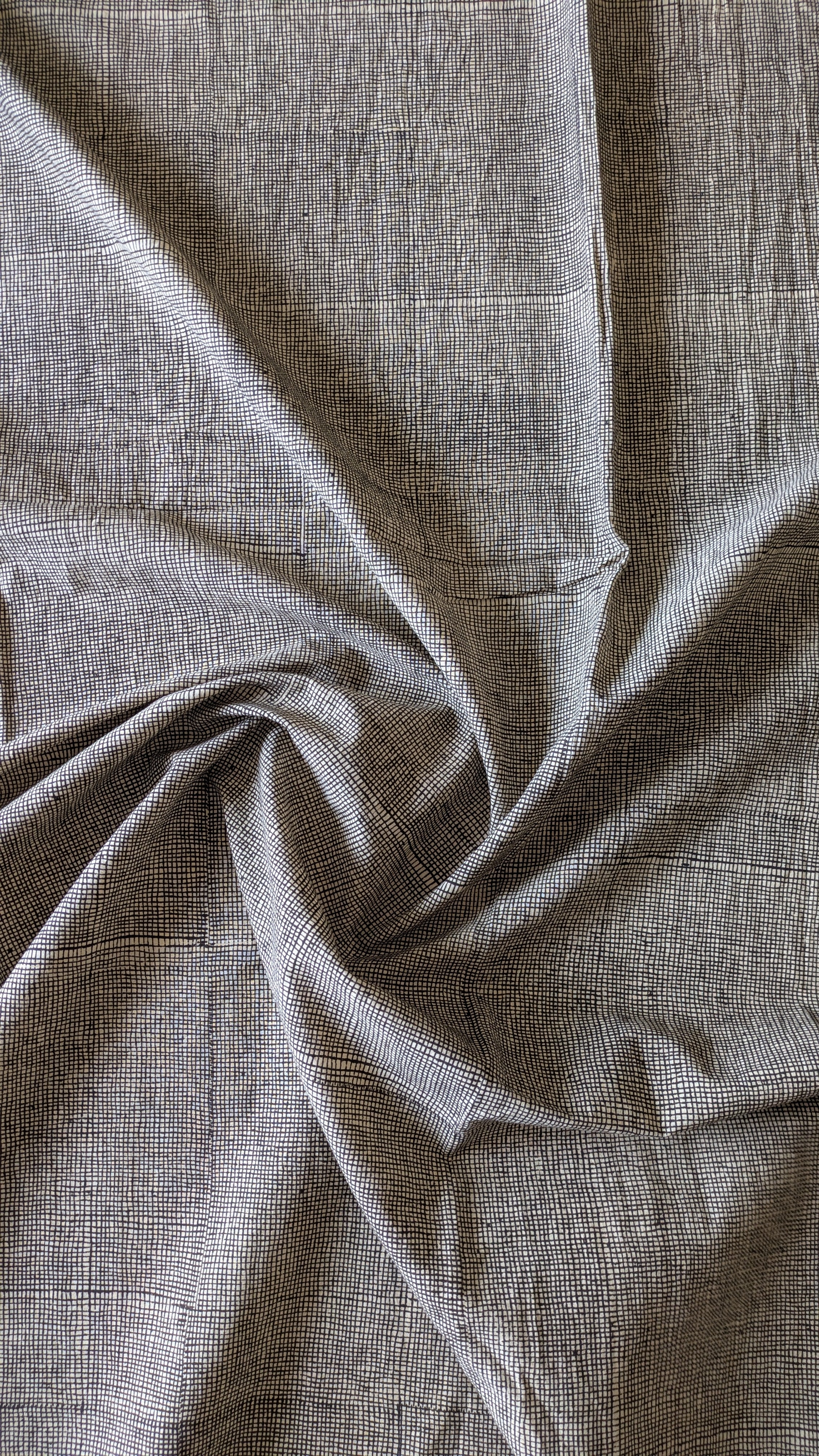 A smart and finely handblock printed fabric featuring thin checks that offer a classic yet contemporary look. Ideal for tailored shirts and breezy dresses, this fabric brings together traditional craftsmanship and everyday style with ease.