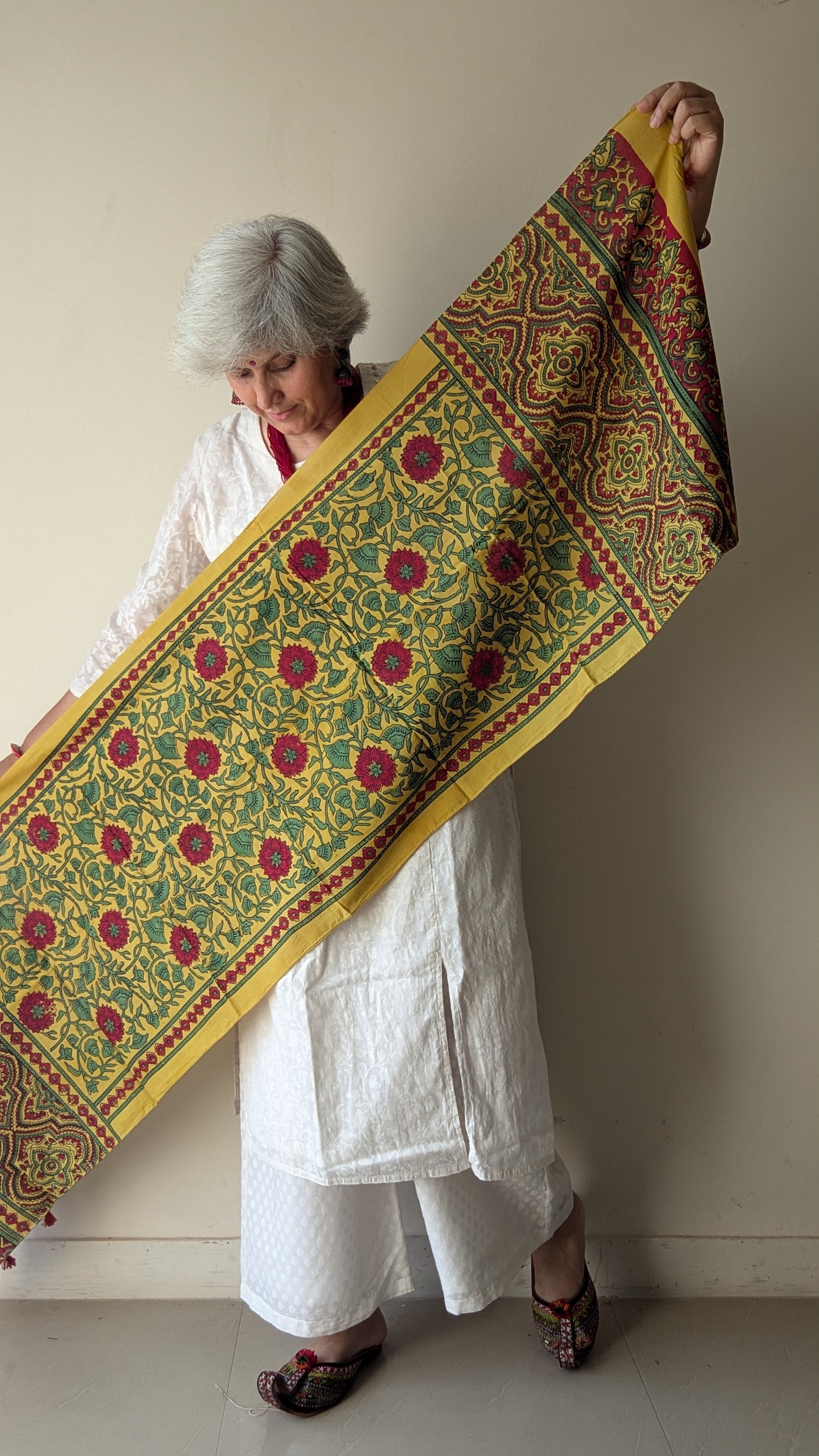 Handblock Ajrakh mul cotton stole crafted by master artisans from Barmer, Rajasthan. Soft, lightweight, and detailed with...