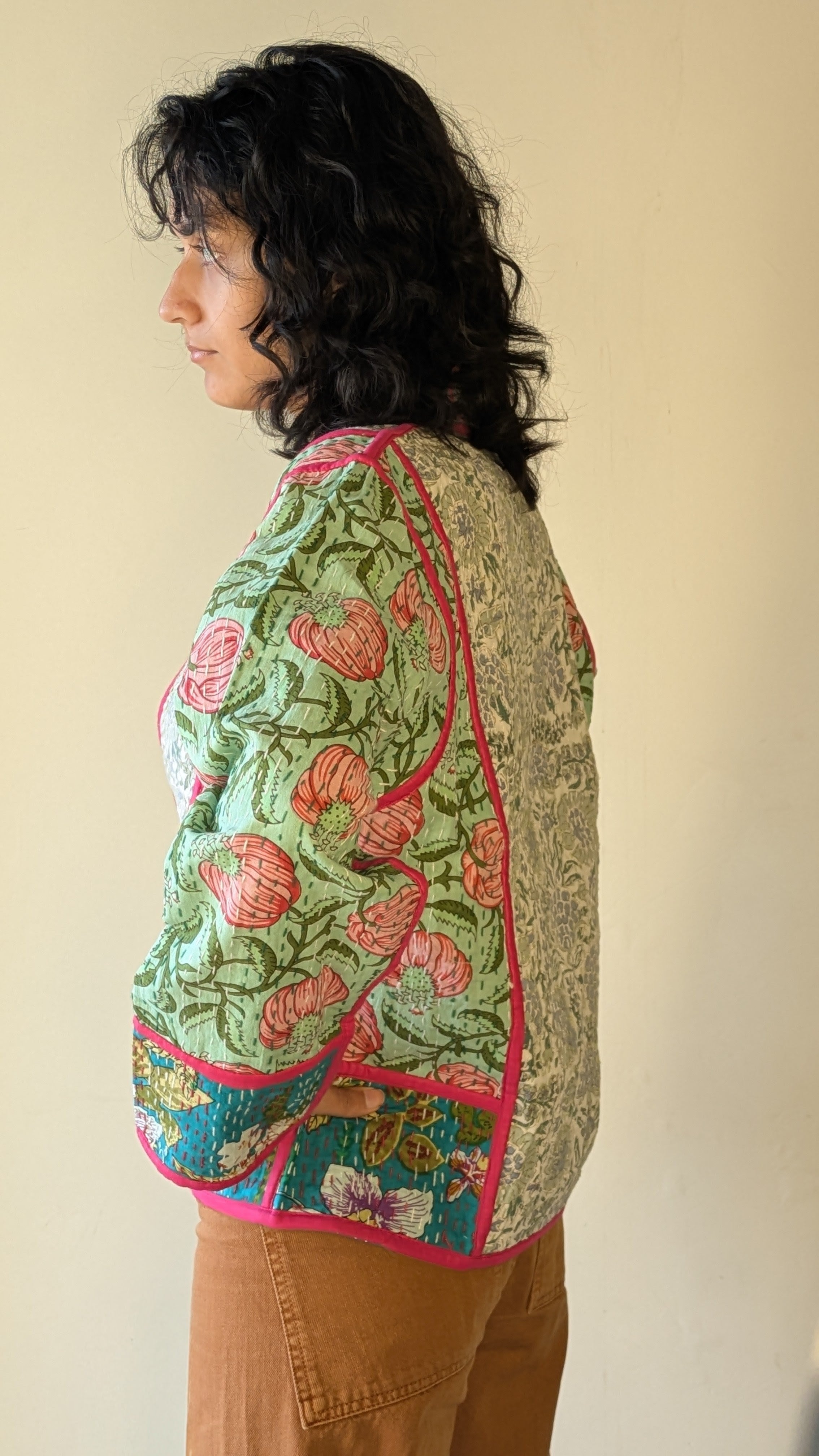 Layering shrug jacket.Handcrafted.Kantha stitch all over.Reversible . Artisan made.