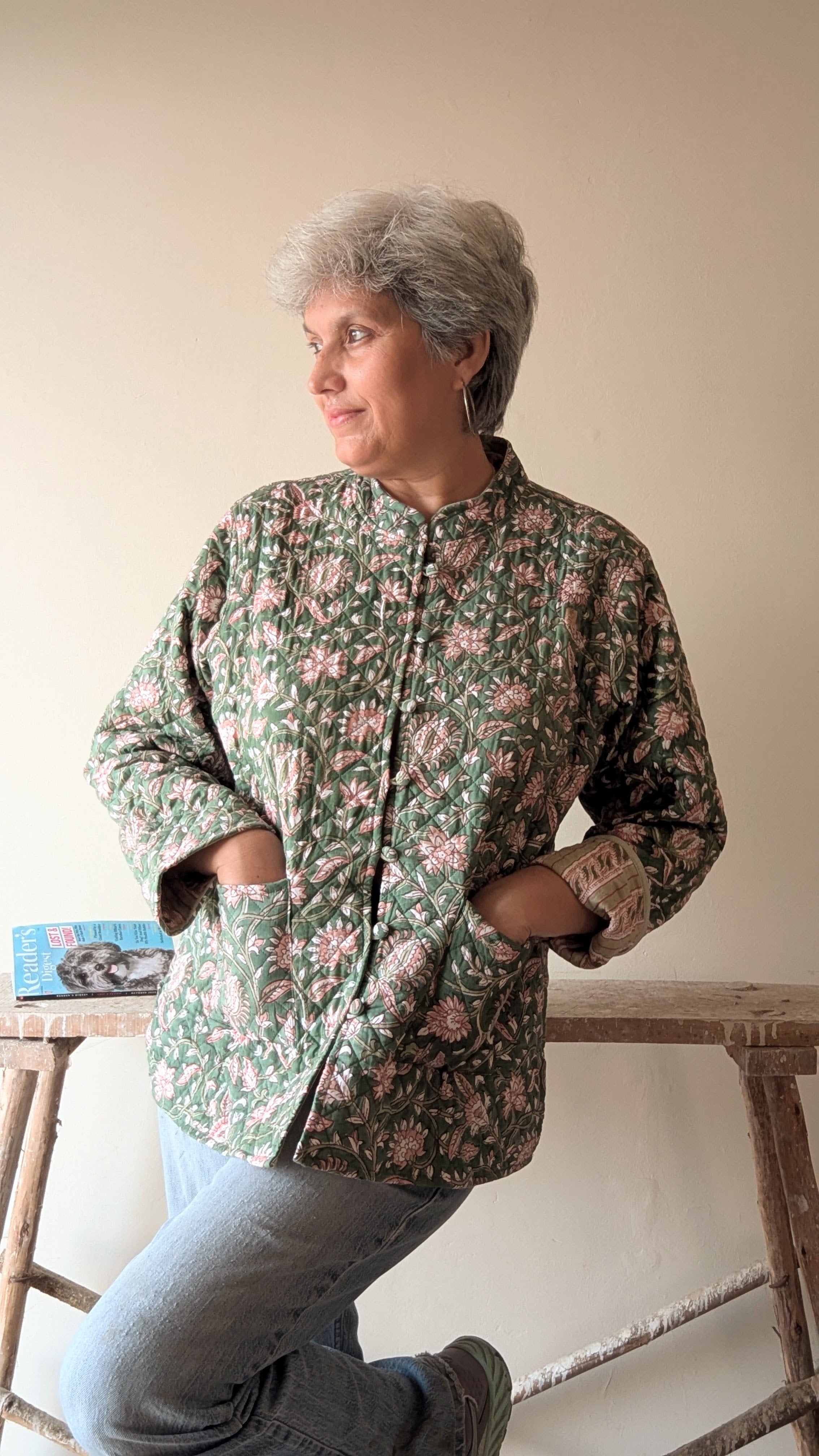 Handcrafted quilted reversible cotton jacket